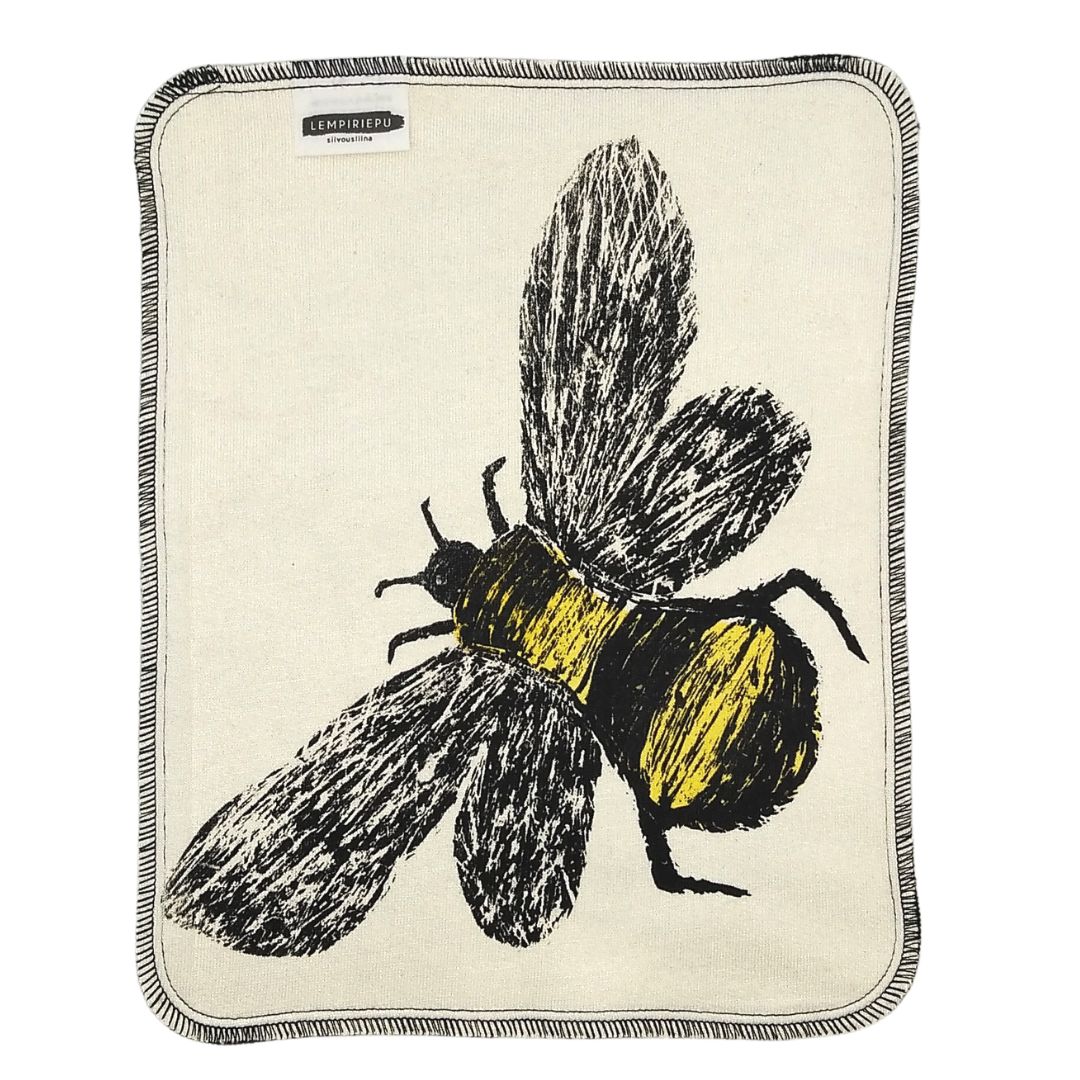 Lempiriepu siivousliina on kestävä ja pestävä bambuinen keittiöön ja siivoukseen sopiva liina, joka on kotimaista käsityötä. Pehmoinen kaksinkertainen bambutiskirätti on paitsi kaunis katsella, myös imee nestettä erittäin hyvin sekä kuivana että kosteana. Näissä rievuissa valkoinen yläpuoli on sileä pintainen ja musta alapuoli lenkkipinta. Ampiainen-kuosin on suunnitellut Annukka Mäkelä.