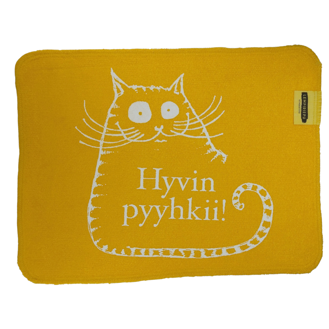 Lempiriepu siivousliina on kestävä ja pestävä bambuinen keittiöön ja siivoukseen sopiva liina, joka on kotimaista käsityötä. Pehmoinen kaksinkertainen bambutiskirätti on paitsi kaunis katsella, myös imee nestettä erittäin hyvin sekä kuivana että kosteana. Näissä rievuissa kuvio puoli on sileä ja nurja pehmeää lenkkipintaista collegea. “Hyvin pyyhkii!” -kuosin on suunnitellut Tuuni Turula design.