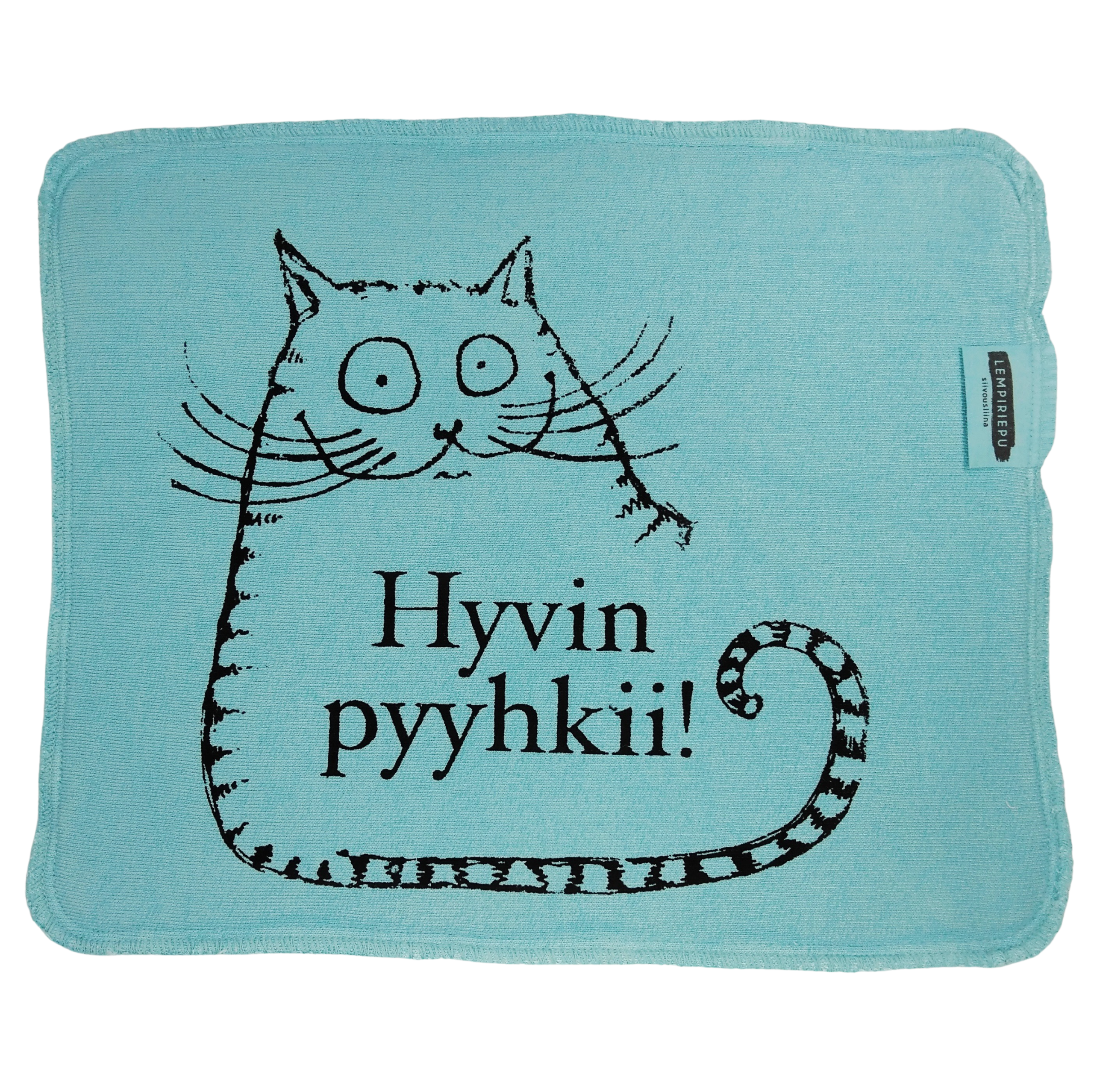 Hyvin pyyhkii! kissa tiskirätti turkoosi musta– bambuinen kestotiskirätti