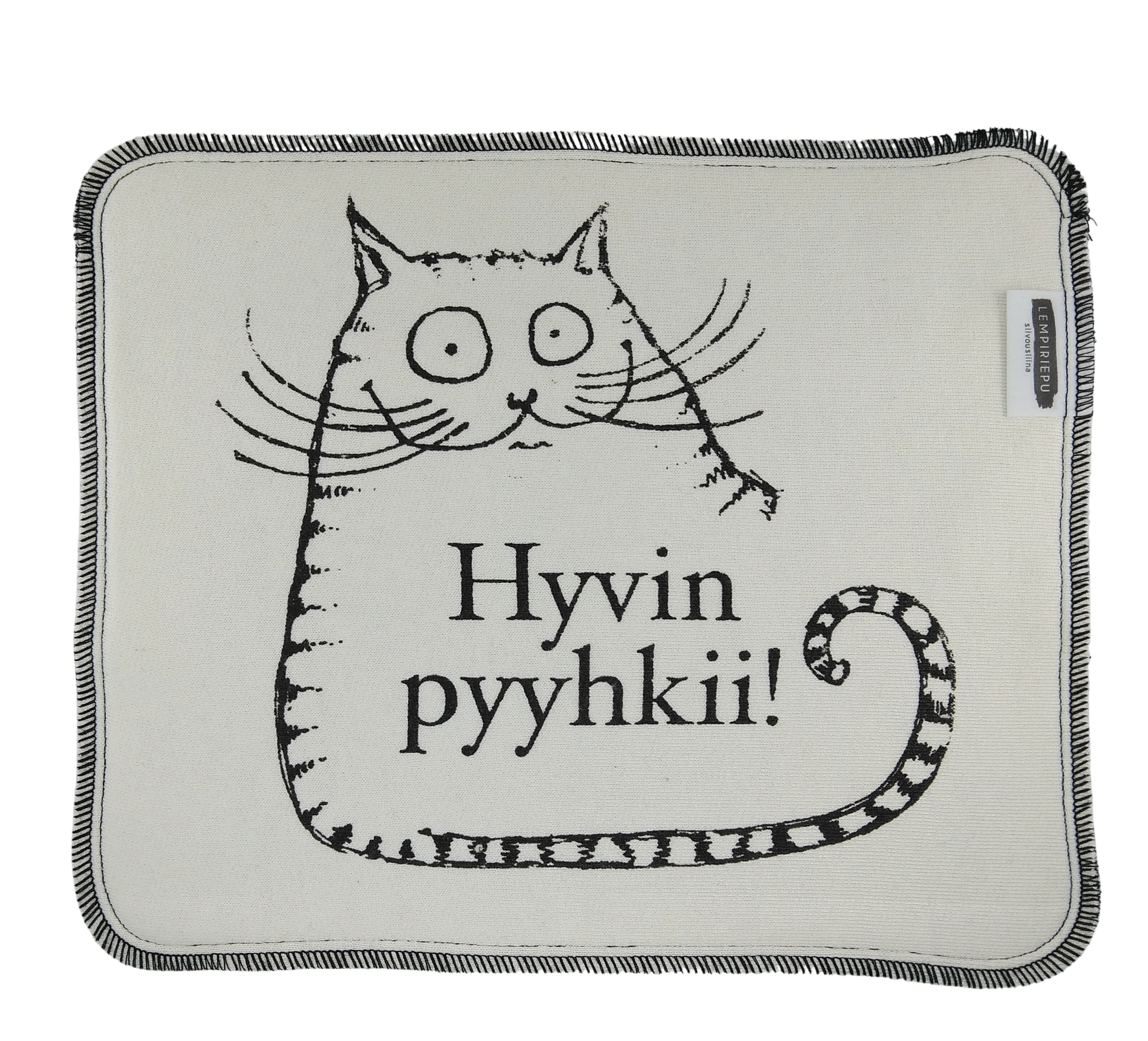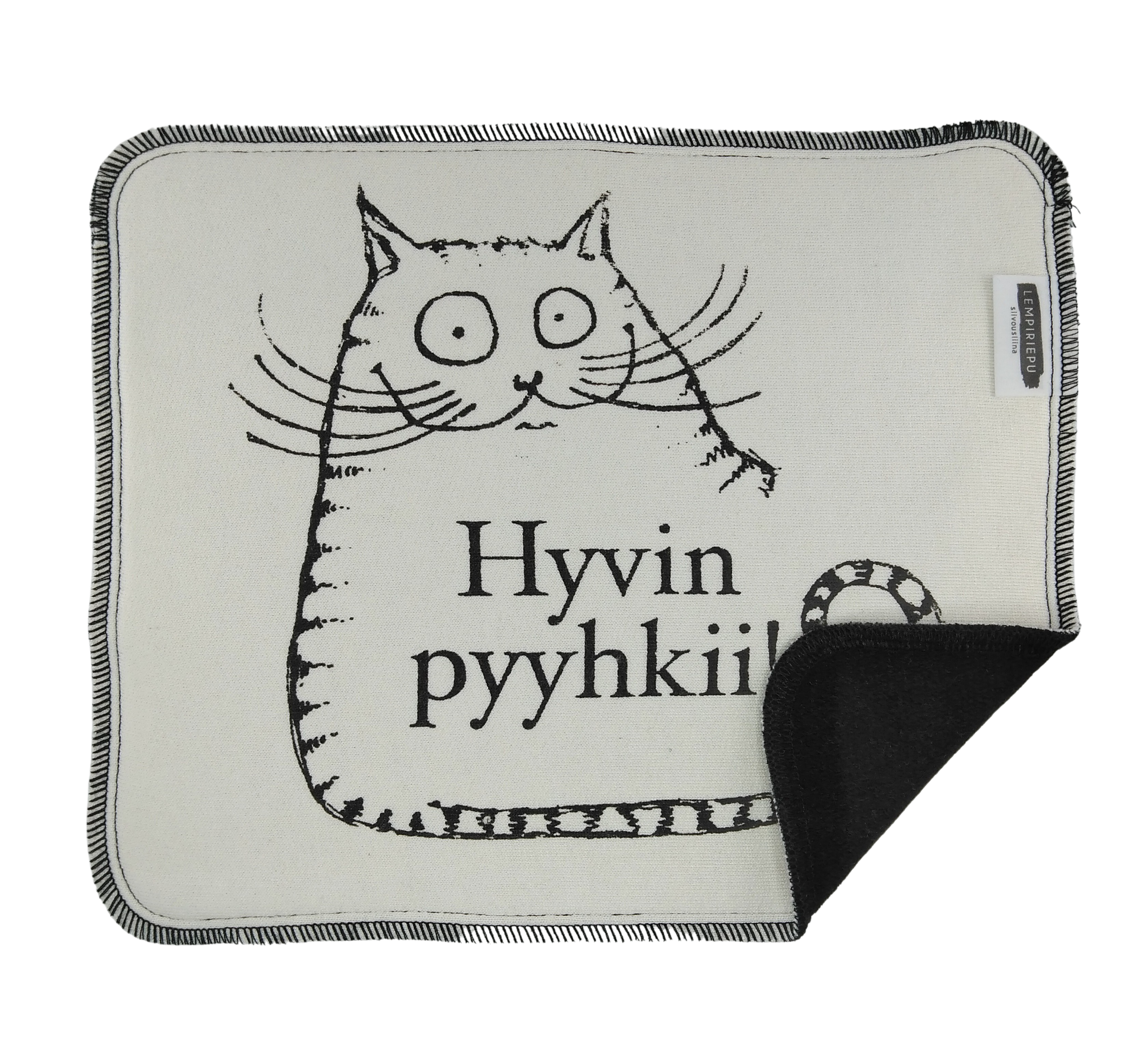 Lempiriepu siivousliina on kestävä ja pestävä bambuinen keittiöön ja siivoukseen sopiva liina, joka on kotimaista käsityötä. Pehmoinen kaksinkertainen bambutiskirätti on paitsi kaunis katsella, myös imee nestettä erittäin hyvin sekä kuivana että kosteana. Näissä rievuissa yläpuolella on sileä pinta ja alapuolella musta froteemainen lenkkipinta. ”Hyvin pyyhkii!” -kuosin on suunnitellut Tuuni Turula design.