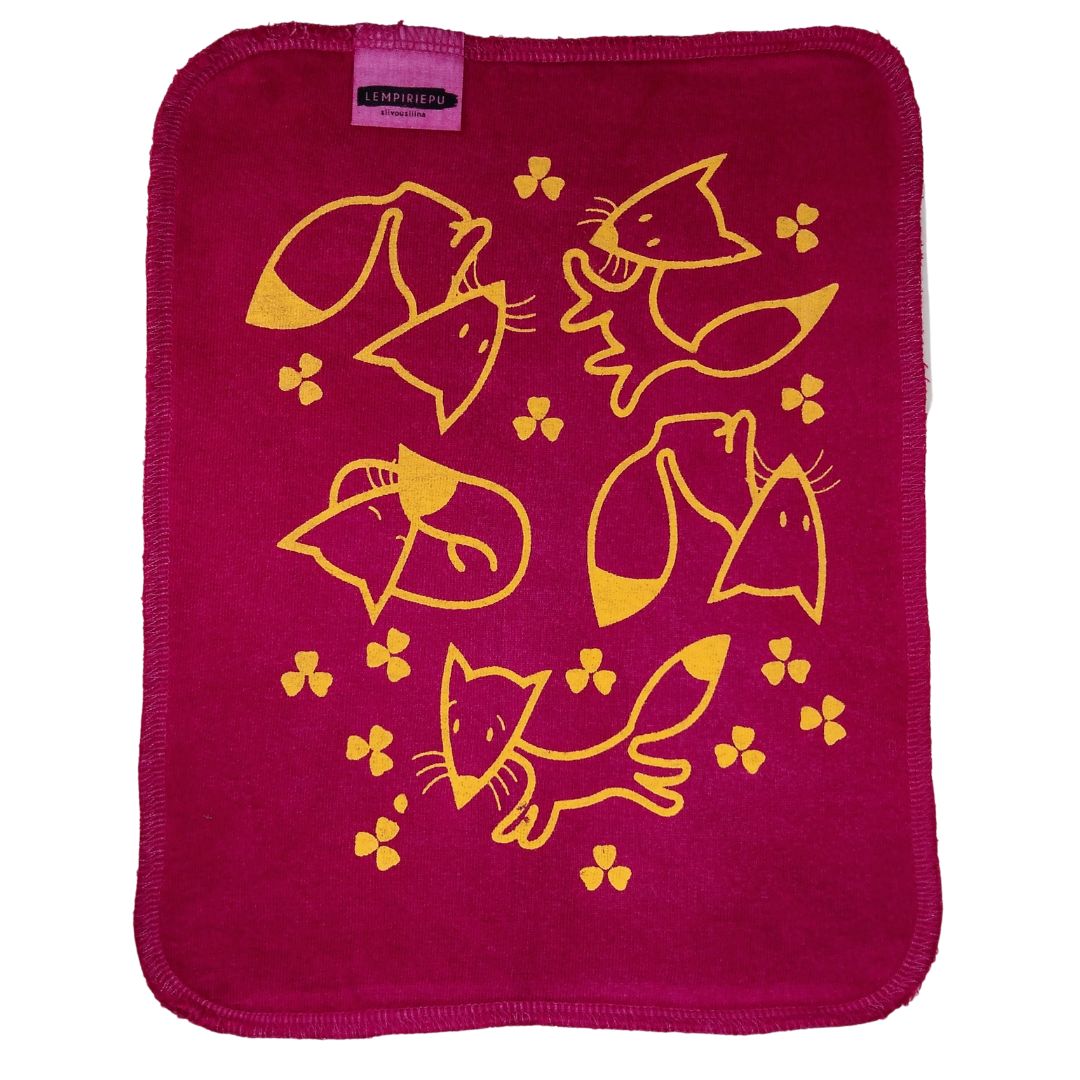 Huuhtele Lempiriepu huolellisesti käytön jälkeen, mieluiten kylmällä vedellä, ja nakkaa välillä pesukoneeseen. Mielummin liian usein, kuin liian harvoin, jos haluat pitää riepusi hajuttomana. Bambutiskirätin voi pestä pesukoneessa muun pyykin joukossa aina uudelleen 40-90° asteessa. Kangas kutistuu pesuissa noin 10%. Huuhteluaineen käyttö on kielletty, sillä se heikentää rätin imukykyä. Kuosittele kosteana.