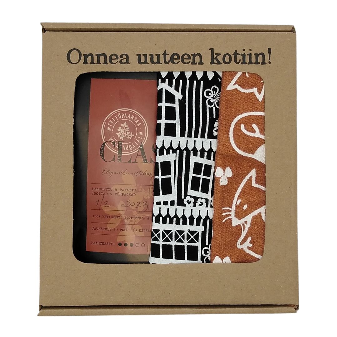 Lahjapakkaus sisältää kaksi Lempiriepu siivousliinaa, sekä kahvia. Sisältää kuvan mukaiset liinat.