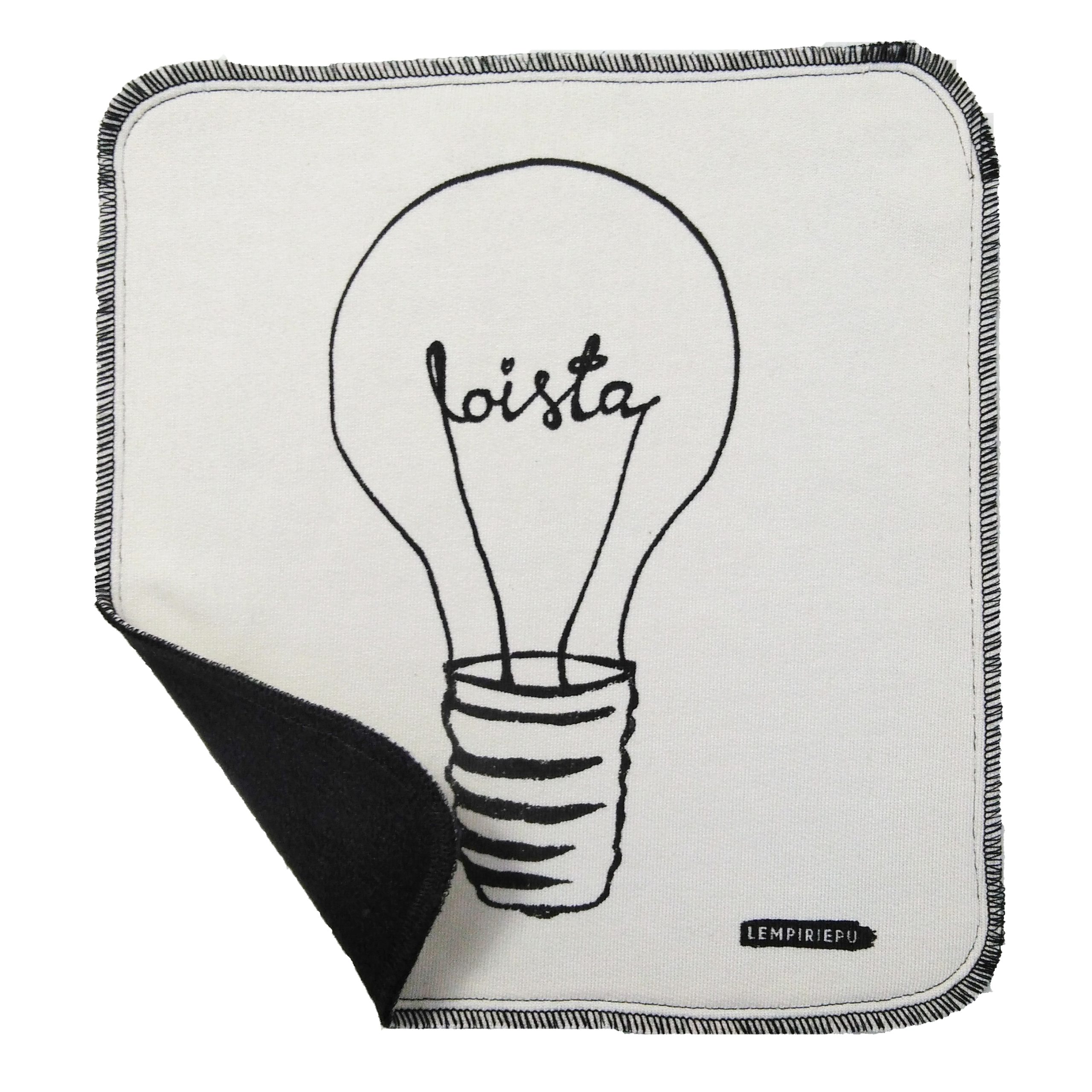 Lempiriepu siivousliina on kestävä ja pestävä bambuinen keittiöön ja siivoukseen sopiva liina, joka on kotimaista käsityötä. Pehmoinen kaksinkertainen bambutiskirätti on paitsi kaunis katsella, myös imee nestettä erittäin hyvin sekä kuivana että kosteana. Näissä rievuissa valkoinen yläpuoli on sileä pintainen ja musta alapuoli lenkkipinta. Loista-kuosin on suunnitellut Annukka Mäkelä.