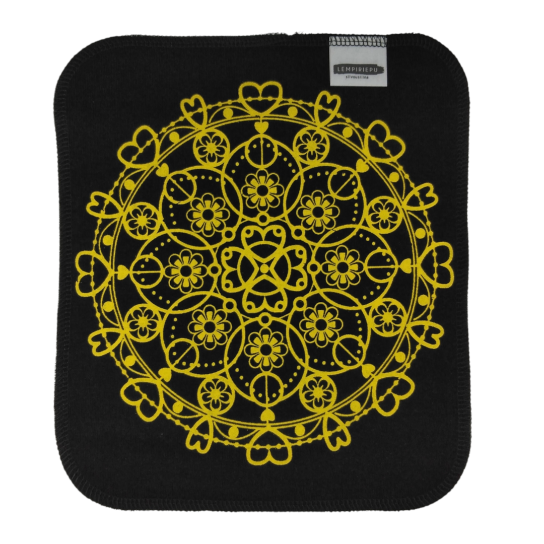 Lempiriepu siivousliina on kestävä ja pestävä bambuinen keittiöön ja siivoukseen sopiva liina, joka on kotimaista käsityötä. Pehmoinen kaksinkertainen bambutiskirätti on paitsi kaunis katsella, myös imee nestettä erittäin hyvin sekä kuivana että kosteana. Näissä mustissa rievuissa on sileä pinta. Pitsi-kuosin on suunnitellut Susanna Mattheiszen.