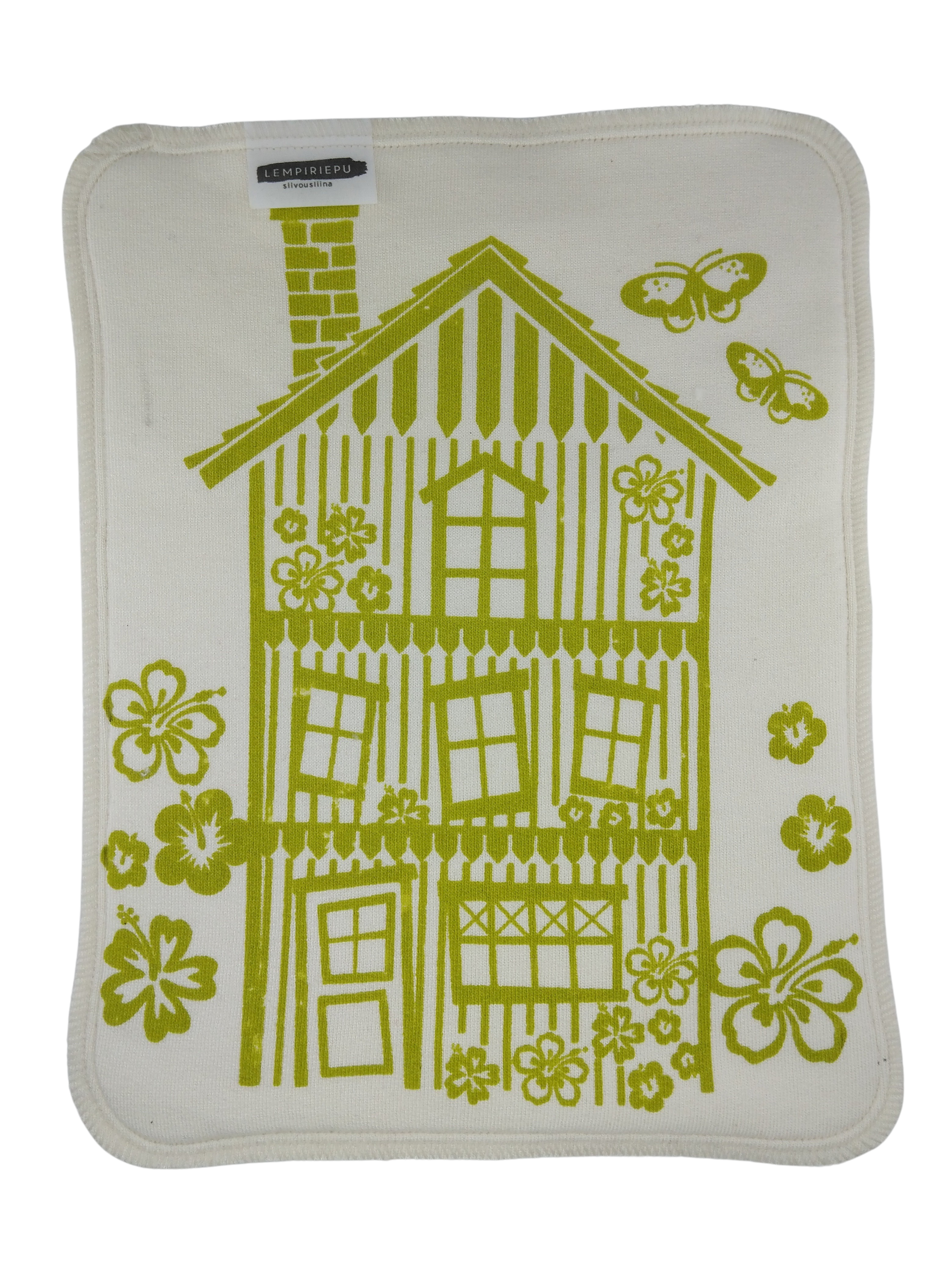 Lempiriepu siivousliina on kestävä ja pestävä bambuinen keittiöön ja siivoukseen sopiva liina, joka on kotimaista käsityötä. Pehmoinen kaksinkertainen bambutiskirätti on paitsi kaunis katsella, myös imee nestettä erittäin hyvin sekä kuivana että kosteana. Näissä rievuissa on sileä pinta molemmilla puolilla. Talo-kuosin on suunnitellut Susanna Mattheiszen.